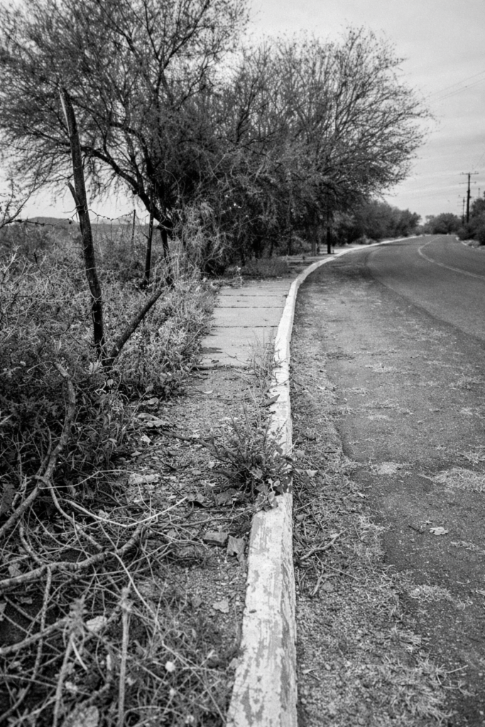In my broader practice, images like this become evidence of the gap between what is built and what is sustained. The sidewalk was never the problem. The problem is what happens after the concrete dries. Who maintains the path. Who clears the brush. Who ensures that what was promised continues to be possible. The curb still curves into the distance, white and certain. The path beside it waits, empty and overgrown, for feet that do not come. Photo Credit: Amy Tucker, 2026